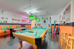The both practical & private layout of our villa provides guests with the ‘Home from Home” experience and ambience of an executive style home with the added enjoyment of a super fully equipped kitchen with stainless steel units, and a fun games room, free hi-speed 1gb WiFi, new air conditioning system and your own large private patio & pool in a secluded environment, with lovely woodland conservation views at the rear, where you will witness absolutely stunning sunsets. All in a country setting whilst being just a hop away from all that Orlando-Disney area offers. Villa features 2 large master bedrooms with king size beds each having private en-suite bathrooms & closet & own walk in wardrobes, plus 2 twin rooms with own closet wardrobes and shared family bathroom. Having a private room for you and one for the kids is a nice way to go.